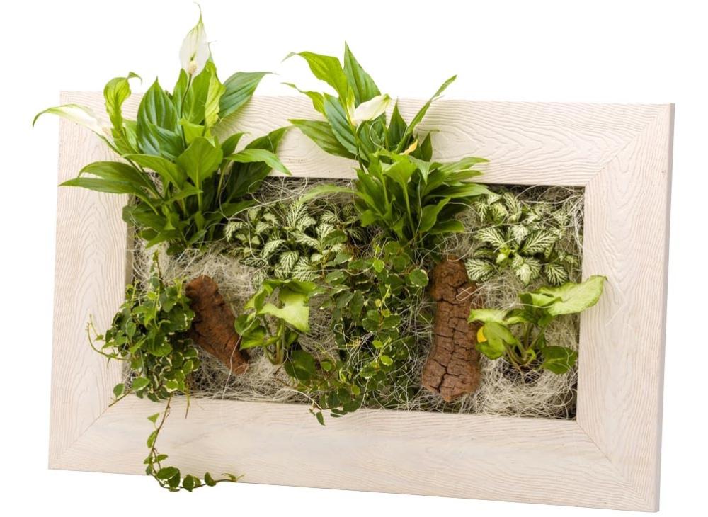 cadre vegetal avec plantes vivantes wallflower bois blanchi m 55 x 33 cm flowerbox leroy merlin