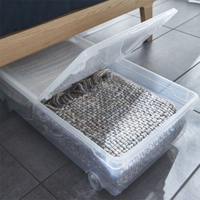rangement dessous de lit en plastique kristal 30l transparent castorama