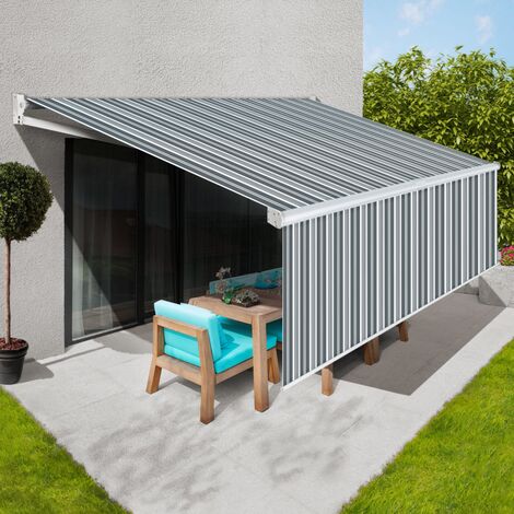 store banne manuel 3 95 m x 3 m gris raye blanc lambrequin enroulable h 1 40