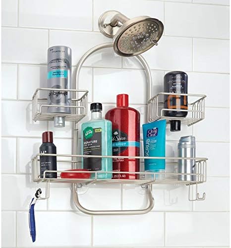 rangement de douche chic sans percage etagere de douche en metal a trois paniers et 2 crochets pour accessoires gris metrodecor mdesign panier de douche a suspendre salle de bain cuisine