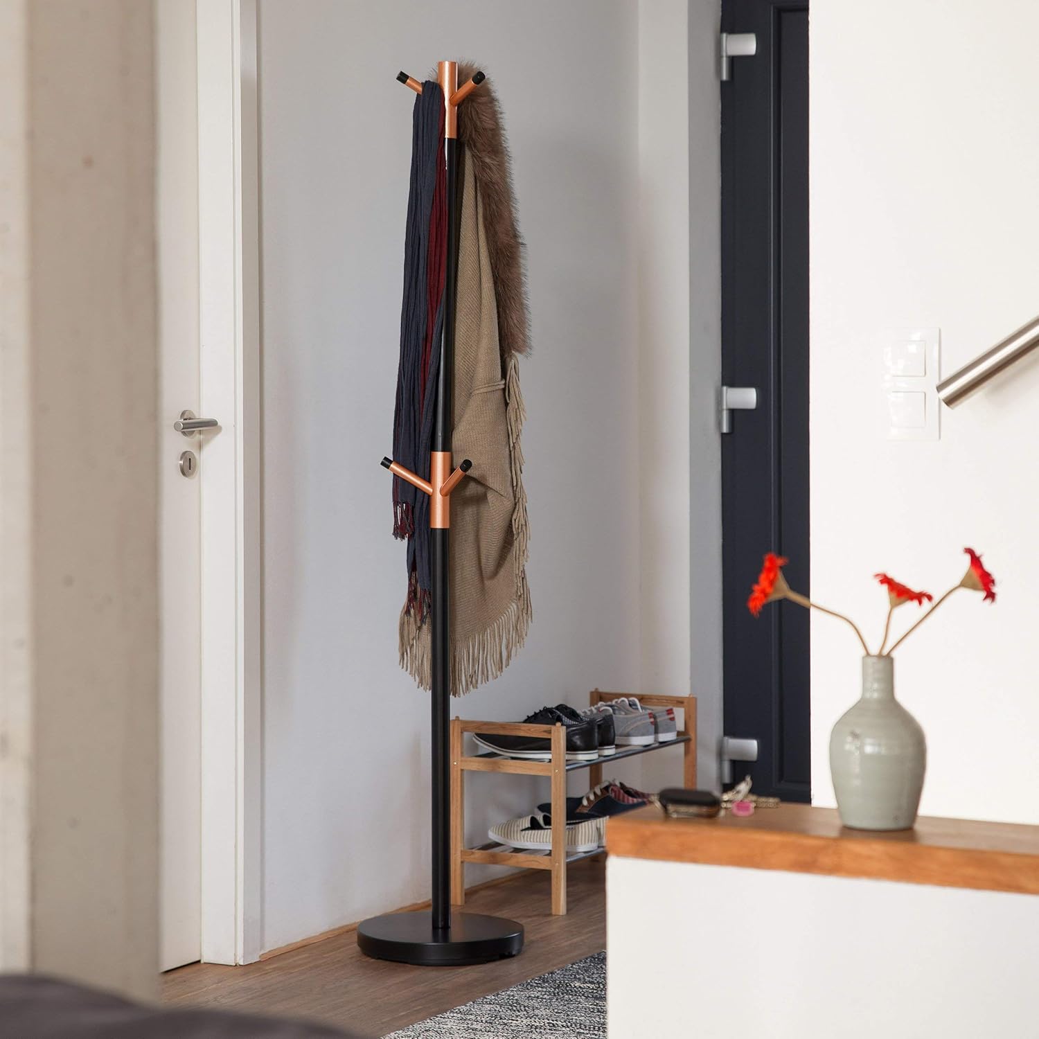 relaxdays porte manteaux design sur pied bois et metal support pour manteaux vestes entree couloir hxlxp noir 175 x 34 x 34 cm entree meubles eng bouldermicrofinance org