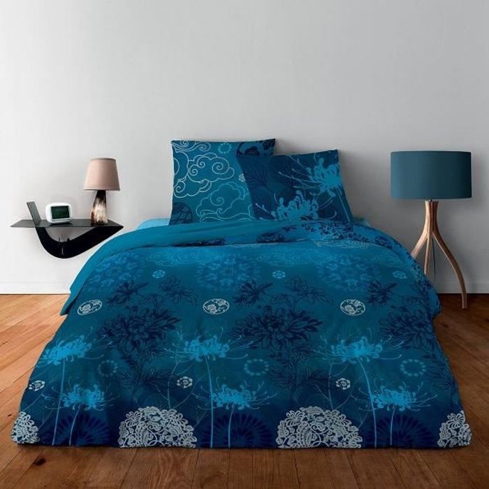 parure de draps 140 japonisant bleu 100 coton 4p cdiscount maison