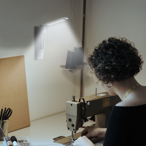 lampe de bureau 18 led portative et modulable lumiere du jour horloge et thermometre chargeur
