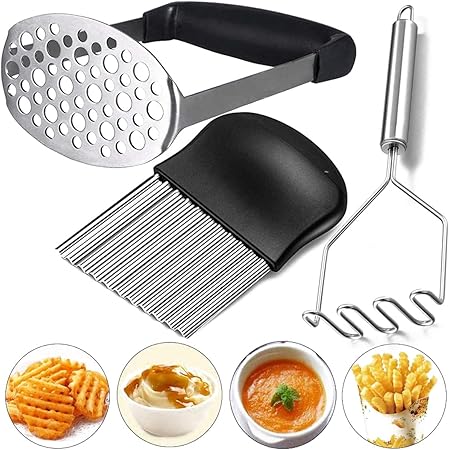 fadaar presse puree lot de 4 presse puree manuel ecrase pomme de terre presse puree manuelle ecraseur pomme de terre avec coupe frite professionnel coupe frite ondule coupe noir amazon fr cuisine