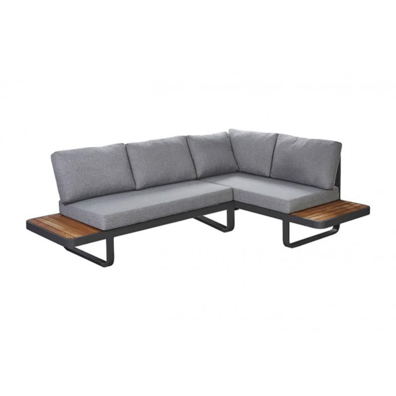 canape d angle de jardin en aluminium coussins gris et bois teck vahine leroy merlin