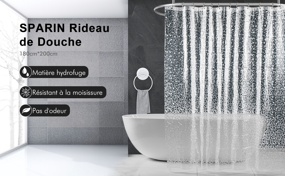 sparin rideau de douche eva etanche rideaux salle de bain toilettes rideau douche anti moisissure antibacterien 180x200cm semi transparent amazon fr cuisine maison