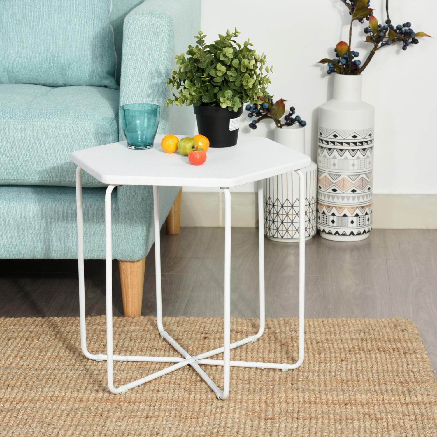 furnish1 petite table basse table d appoint fonte octogonale avec haut blanc jambe en metal noir 45 5 40 41 5cm leroy merlin