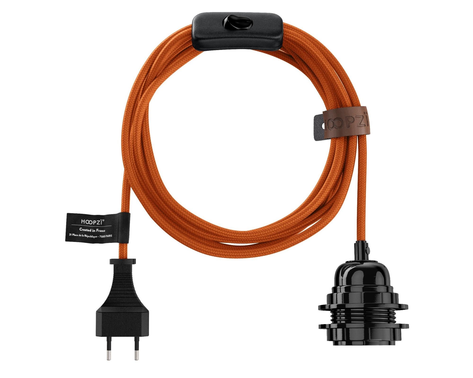 suspension luminaire fil electrique tissu 4 5m e27 avec interrupteur baladeuse deco orange hoopzi bala leroy merlin